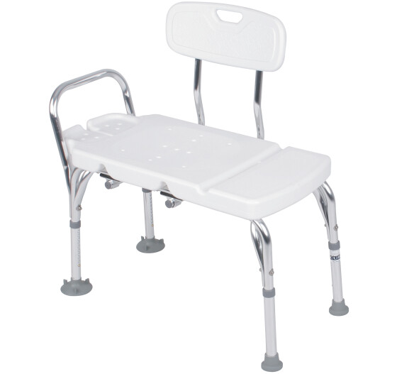 A bath transfer bench enablies the user to transfer from the bathroom into the bath and can adaptable to suit the layout of the bathroom. Comes with a backrest and anti-slip suction feet to enable a safe transfer.