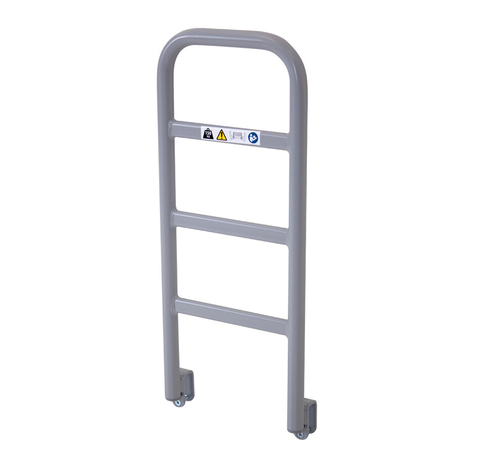 Side support rails clamp on to provide a short side support rail to assist user with in-bed positioning and getting in and out of bed.