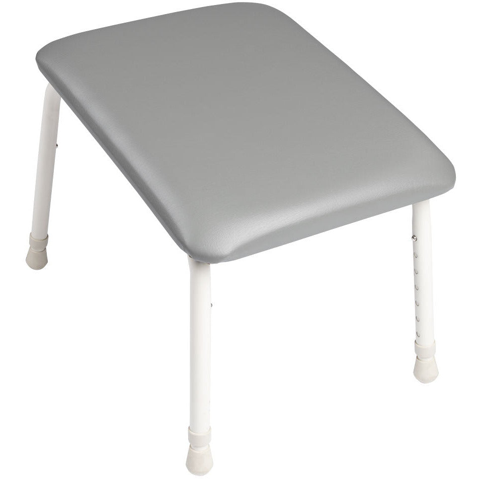 A leg rest stool has a padded top to ensure comfort and is height adjustable to meet the user’s specific needs.